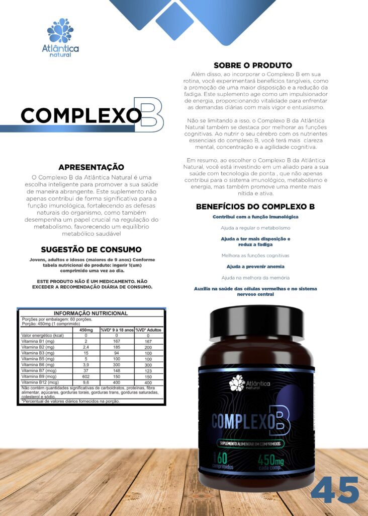 O Complexo B da Atlântica Natural é uma escolha inteligente para promover a sua saúde de maneira abrangente. Este suplemento não apenas contribui de forma significativa para a função imunológica, fortalecendo as defesas naturais do organismo, como também desempenha um papel crucial na regulação do metabolismo, favorecendo um equilíbrio metabólico saudável.