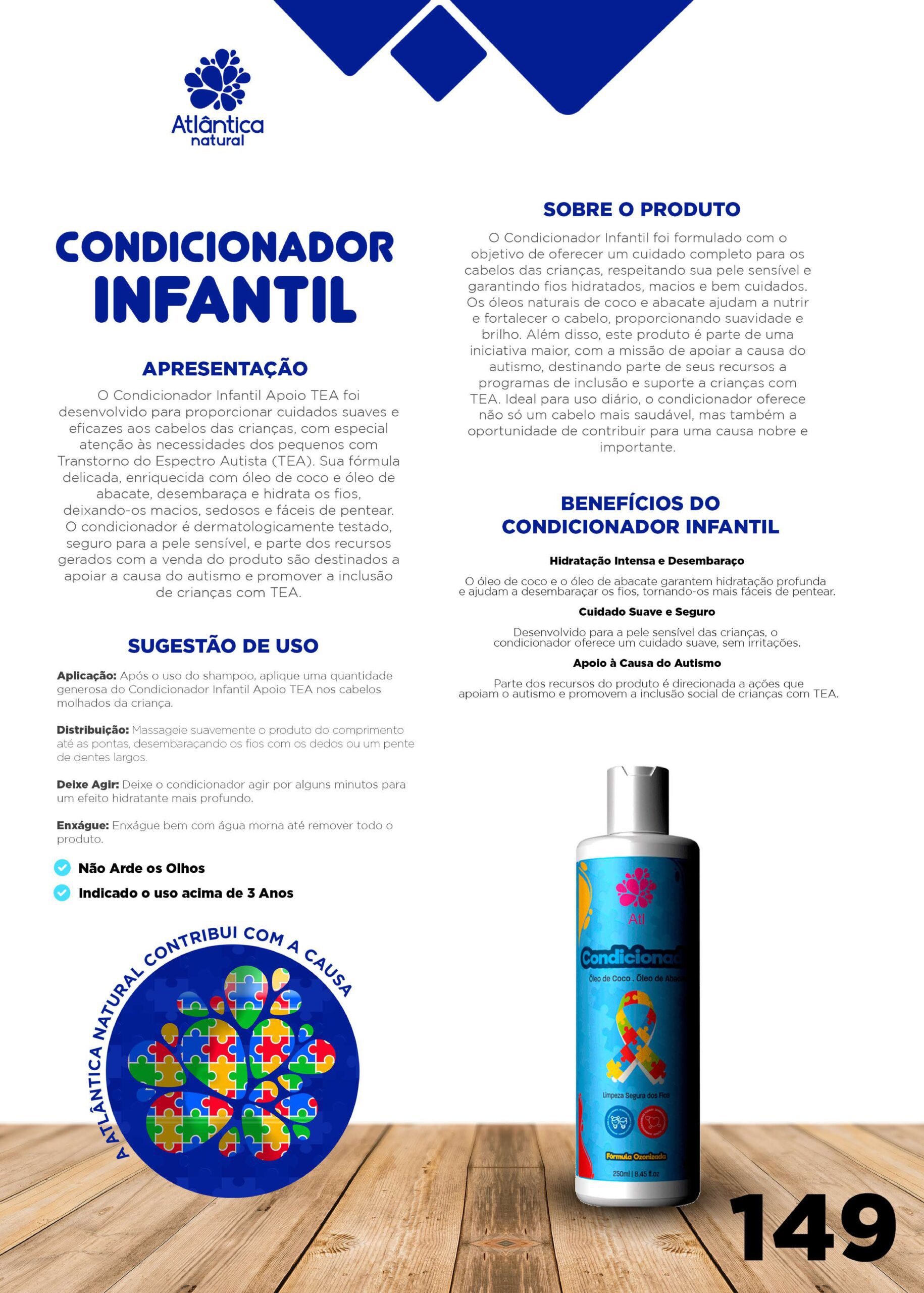 O condicionador é dermatologicamente testado, seguro para a pele sensível, e parte dos recursos gerados com a venda do produto são destinados a apoiar a causa do autismo e promover a inclusão de crianças com TEA.