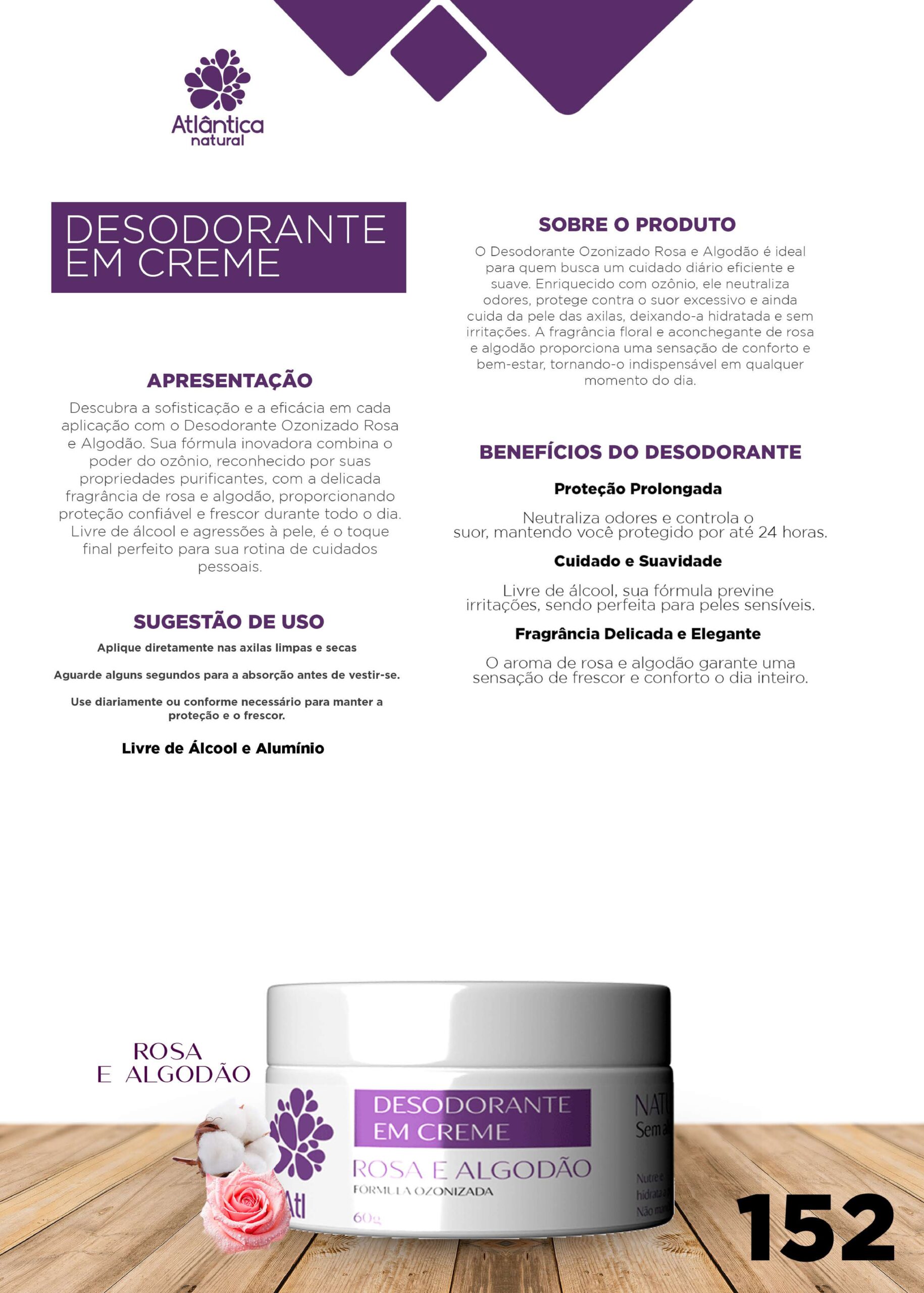 Descubra a sofisticação e a eficácia em cada aplicação com o Desodorante Ozonizado Rosa e Algodão.