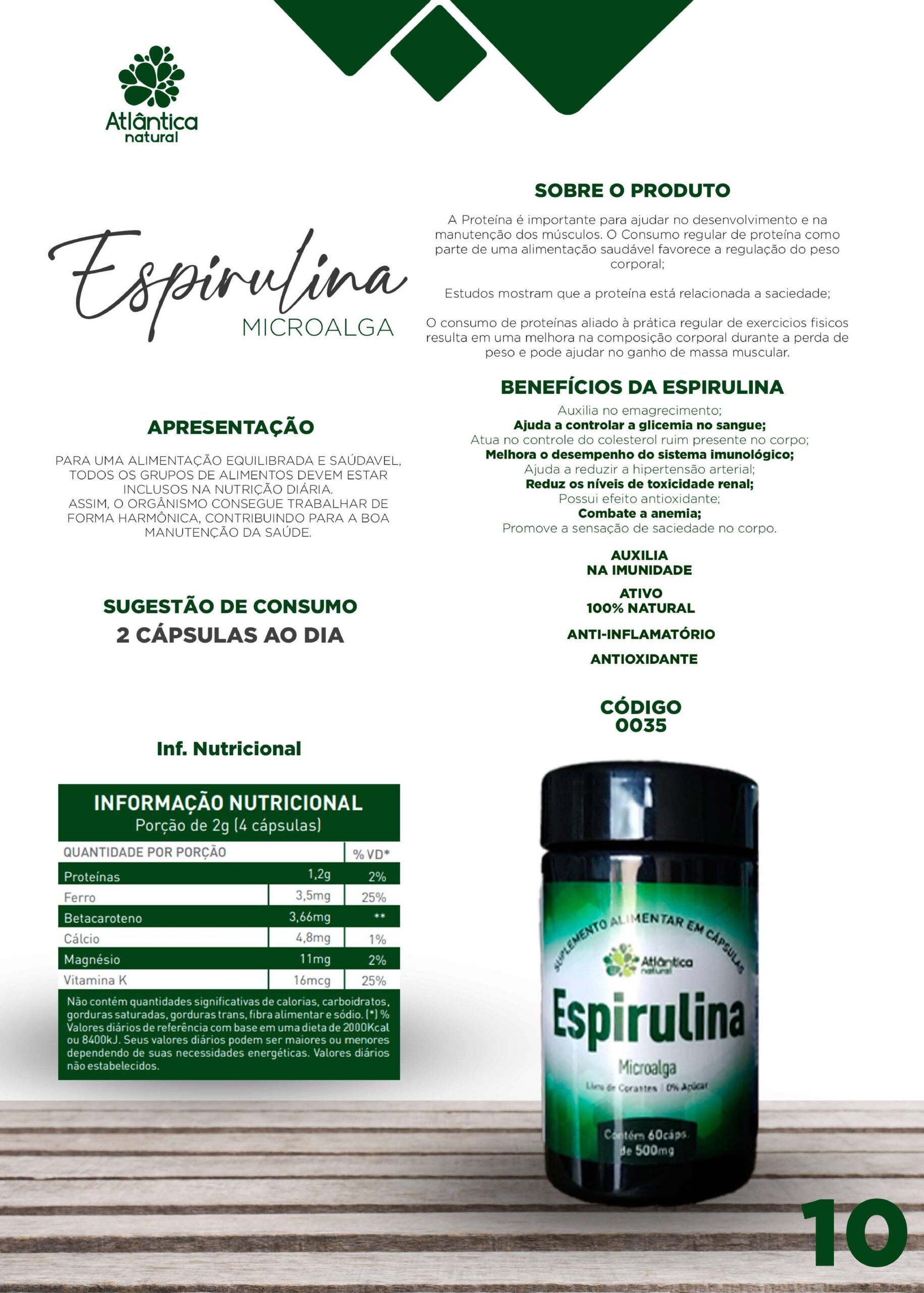 Além de seu valor nutricional, a espirulina tem sido associada a diversos benefícios à saúde, como a capacidade de ajudar na desintoxicação do organismo, reduzir o colesterol, fornecer suporte à saúde cardiovascular e ter propriedades anti-inflamatórias.