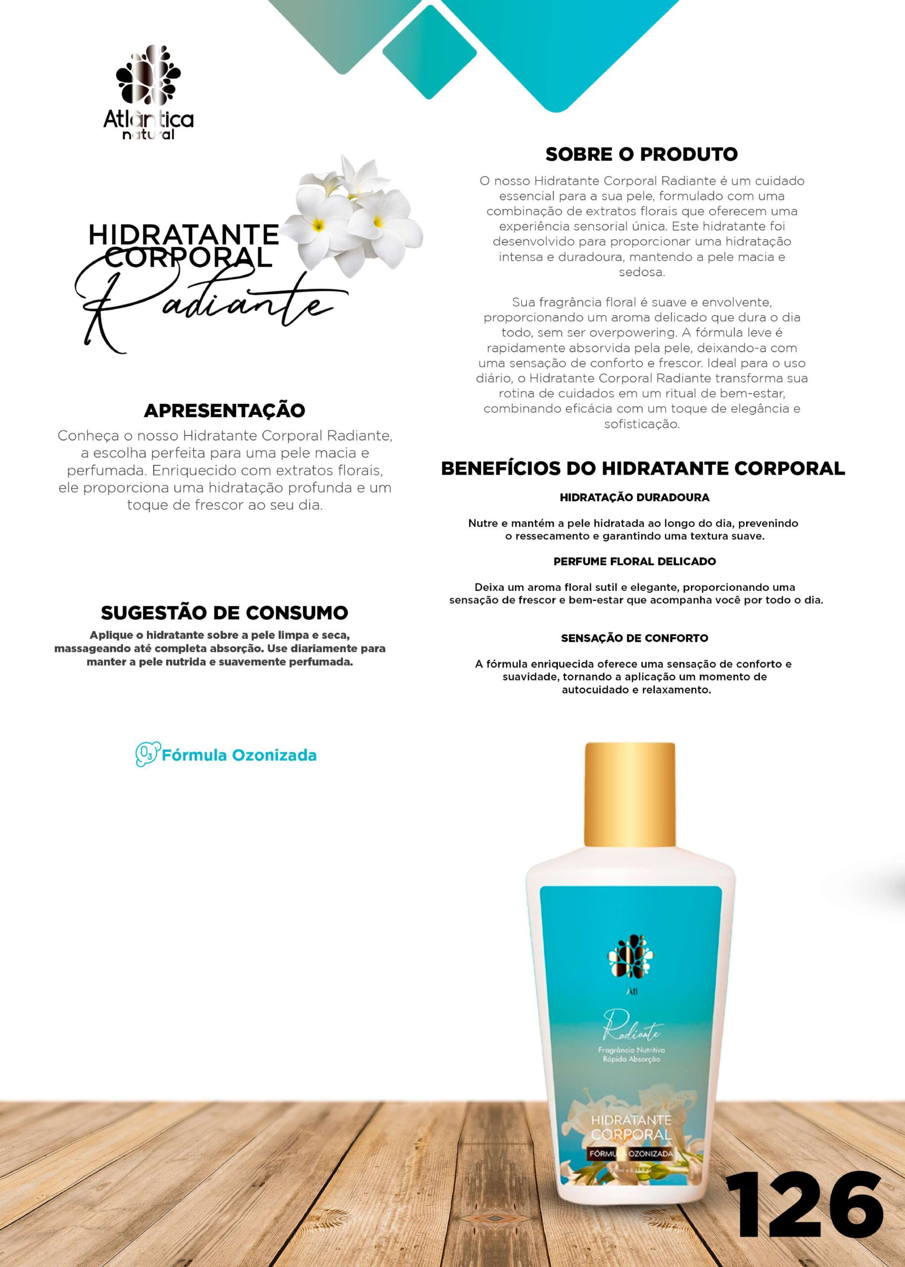 Conheça o nosso Hidratante Corporal Radiante, a escolha perfeita para uma pele macia e perfumada. Enriquecido com extratos florais, ele proporciona uma hidratação profunda e um toque de frescor ao seu dia.