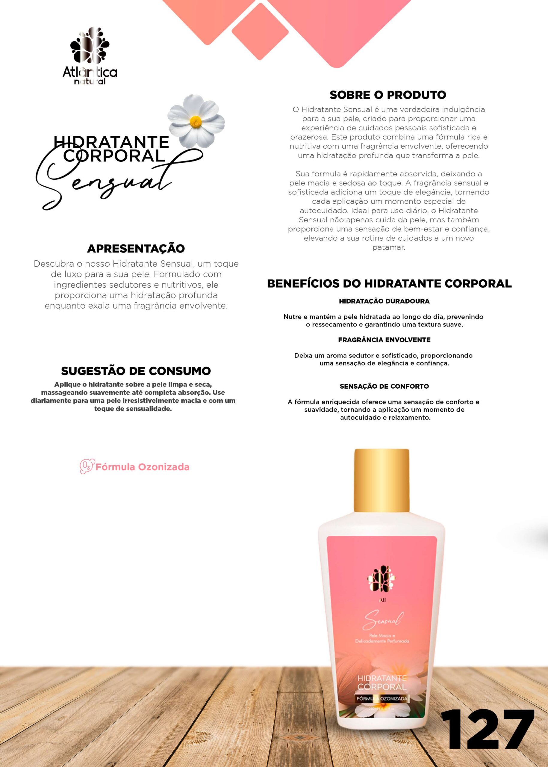 Descubra o nosso Hidratante Sensual, um toque de luxo para a sua pele. Formulado com ingredientes sedutores e nutritivos, ele proporciona uma hidratação profunda enquanto exala uma fragrância envolvente.