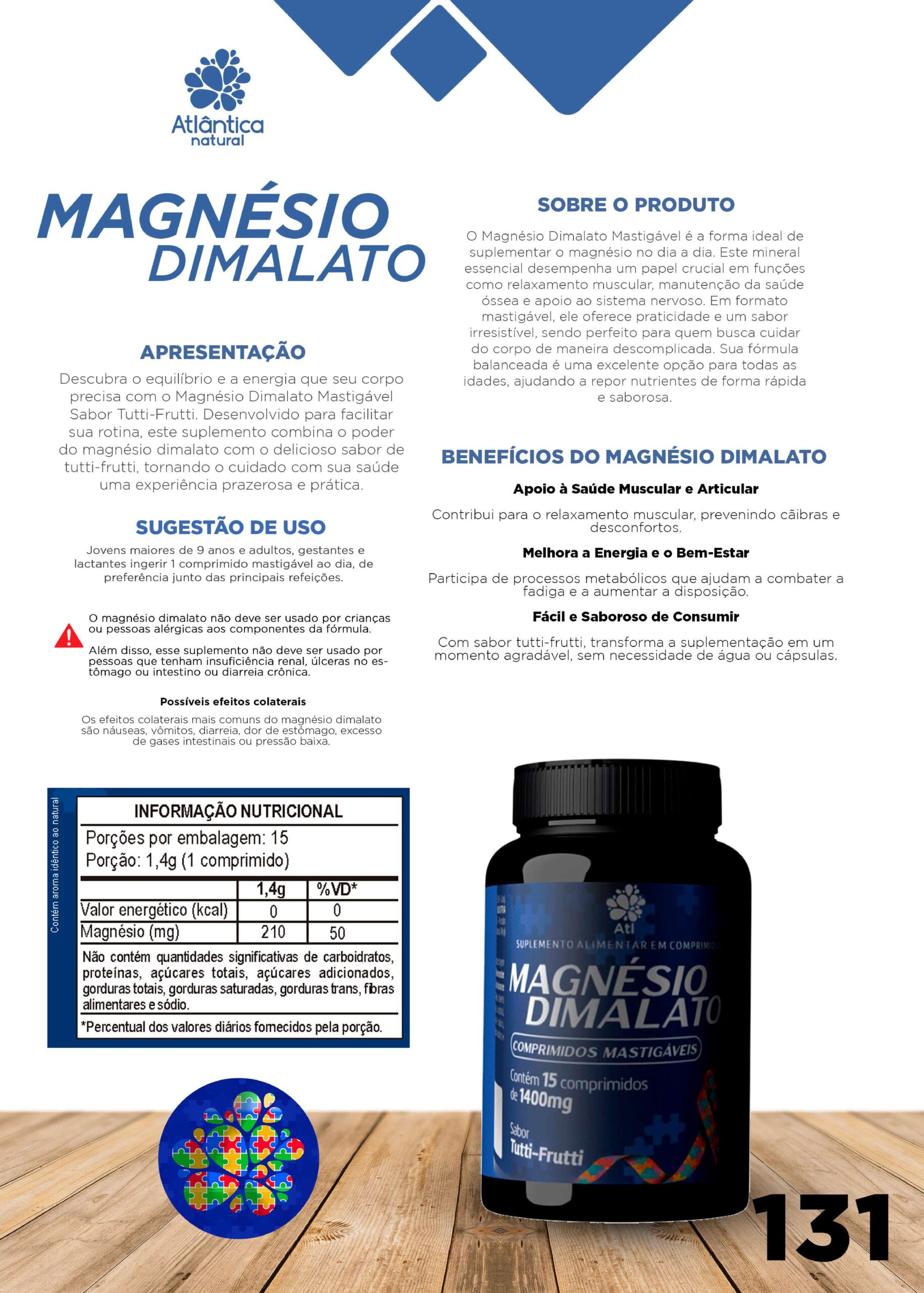 Desenvolvido para facilitar sua rotina, este suplemento combina o poder do magnésio dimalato com o delicioso sabor de tutti-frutti, tornando o cuidado com a sua saúde uma experiência prazerosa e prática.