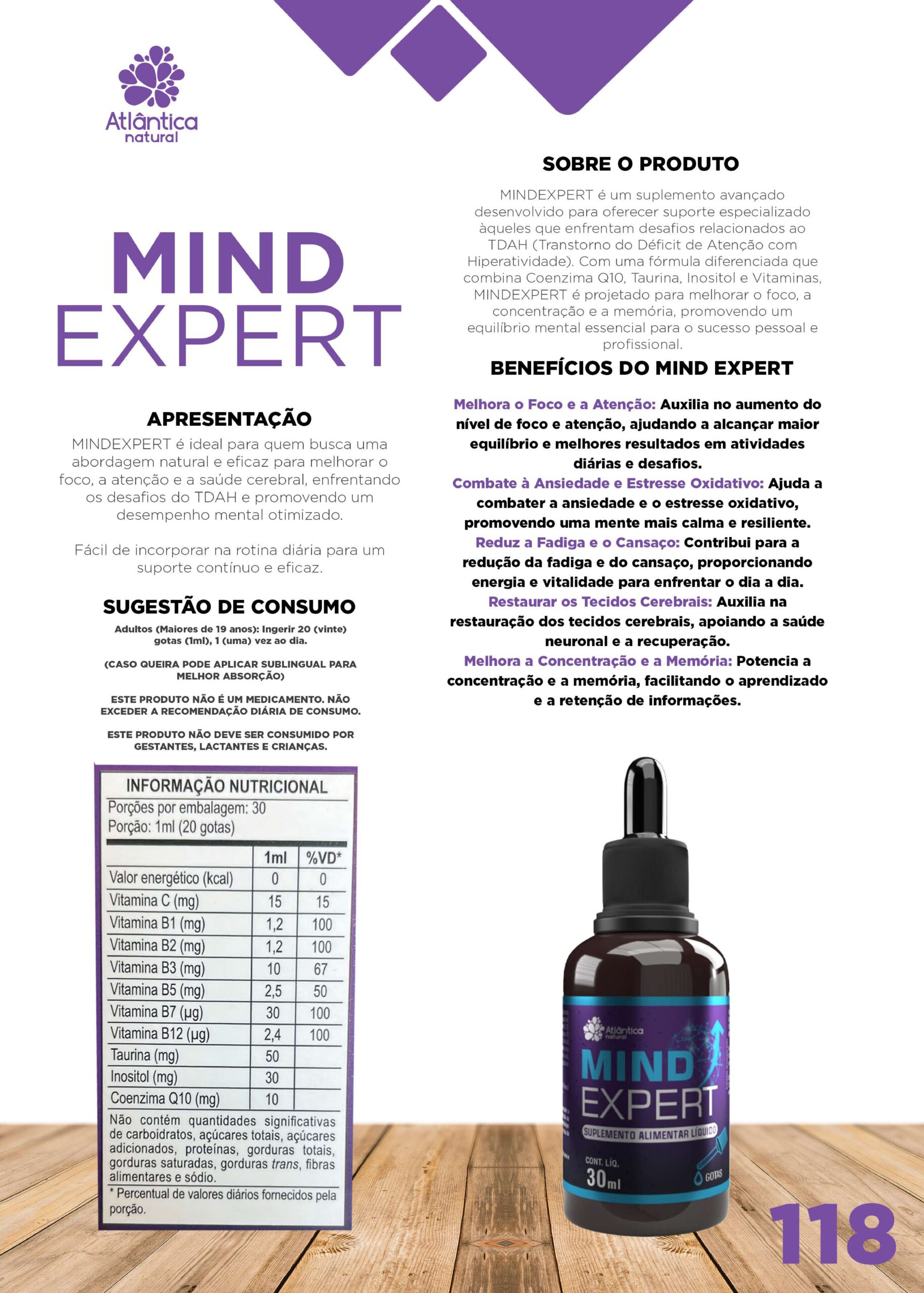 MINDEXPERT é ideal para quem busca uma abordagem natural e eficaz para melhorar o foco, a atenção e a saúde cerebral, enfrentando os desafios do TDAH e promovendo um desempenho mental otimizado.
